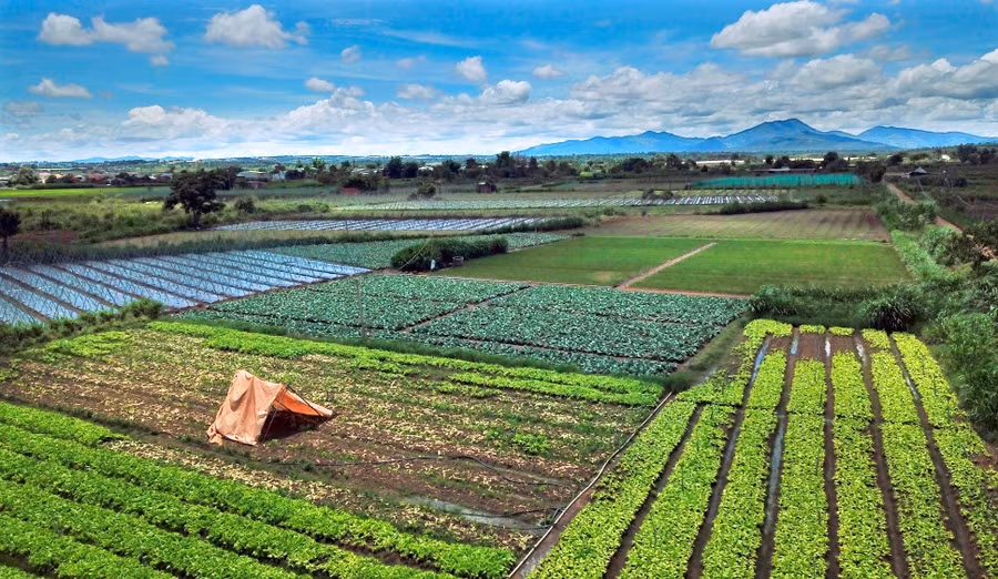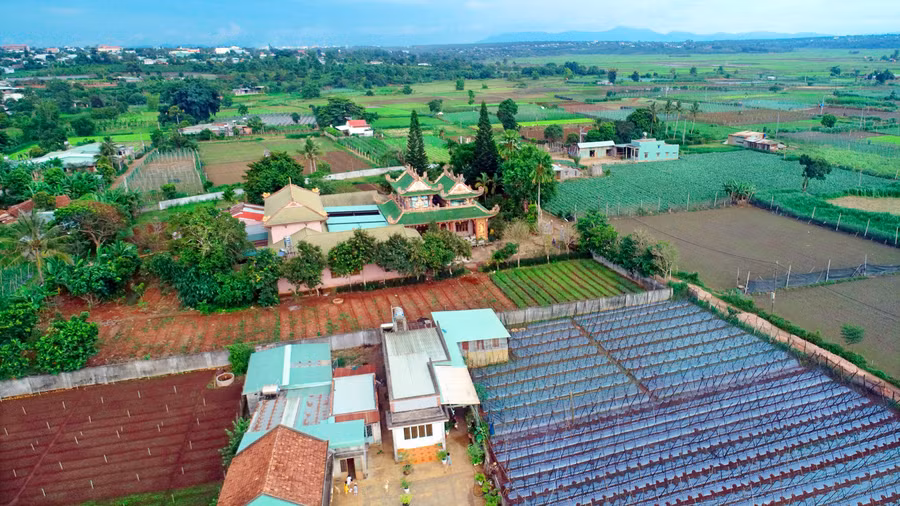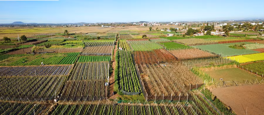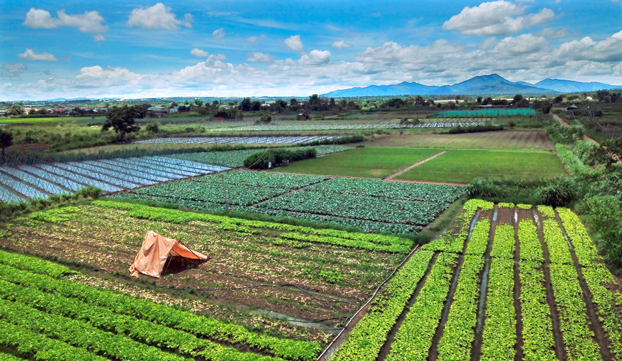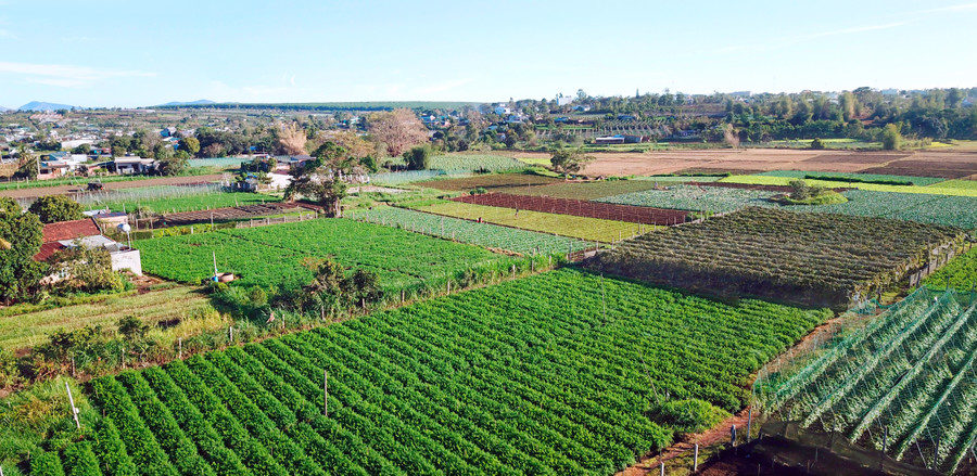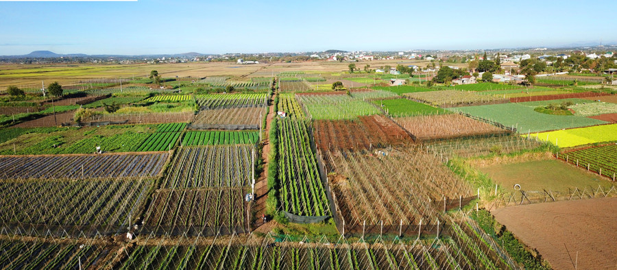 (GLO)- Từ trên cao nhìn xuống, những thửa ruộng vuông vức trồng rau của người dân tại thôn 2 (xã An Phú, TP. Pleiku, tỉnh Gia Lai) đẹp tựa như một bức tranh nhiều sắc màu.