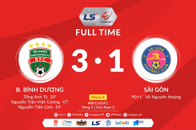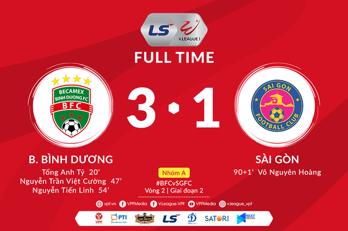 Lối chơi ấy nhanh chóng phát huy tác dụng khi B.Bình Dương lần lượt có 3 bàn thắng liên tiếp vào lưới Sài Gòn FC do công của Tống Anh Tỷ (phút 20), Việt Cường (47') và Tiến Linh (54') sau những pha phản công sắc nét đầy tốc độ. Sài Gòn FC chỉ có một bàn thắng danh dự ở những phút bù giờ cuối trận đấu do công tài năng trẻ lò PVF Võ Nguyên Hoàng.