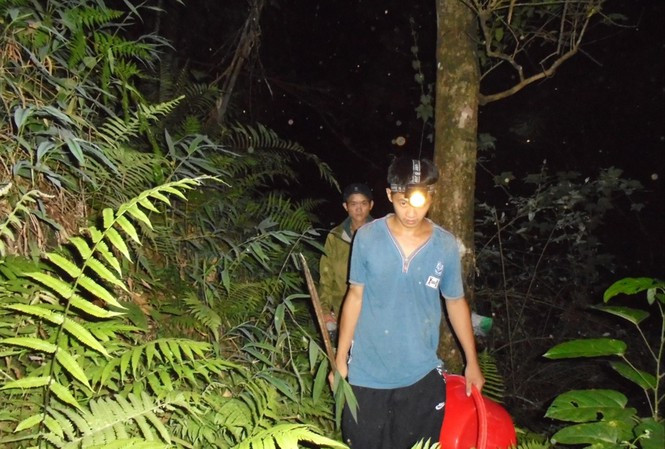 Việc săn ong đất chủ yếu diễn ra về đêm trong rừng với nhiều nguy hiểm rình rập. Ảnh: Nguyễn Thắng