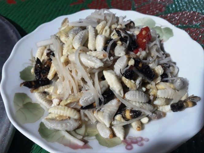 Nhộng ong đất xào măng chua - một món ăn đặc sản