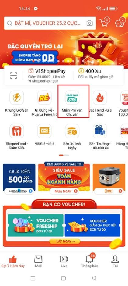 Để săn mã freeship 0đ trên banner bạn cần thực hiện theo các bước như sau: