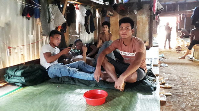 Lao động tại các bãi vàng chủ yếu là người dân tộc thiểu số Khơ Mú, Mông, M’Nông… Nhiều thanh niên không hiểu được tiếng Kinh nên giao tiếp bập bõm. Họ đều xuất thân trong những gia đình nông nghèo khó. Như tại bãi của ông Th., có 2 cặp vợ chồng được “săn” về từ Bản Vẽ (Nghệ An). Vốn gốc Nghệ An, nên ông Th. thường xuyên về quê để tìm lao động. V.Th (25 tuổi) và C. (33 tuổi, cùng là dân tộc Khơ Mú) kể cách đây 1 tháng được ông Th. tìm tới nhà để “mời” đi làm việc. Thế là cả C. và V.Th rủ vợ đi cùng. Hai cặp vợ chồng được đưa ngay vào bãi rồi cho xuống hầm sâu để đào quặng, mức lương 6 triệu đồng/người.