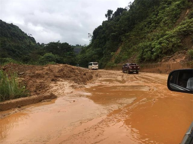 Do mưa lũ, một khối lượng đất khá lớn từ taluy dương đã tràn xuống lòng đường, vùi lấp rãnh thoát nước và cản trở giao thông đi lại. Sở GTVT đã cho lực lượng dọn dẹp lòng đường, khơi thông mương thoát nước, tạm thời đáp ứng nhu cầu đi lại của nhân dân.