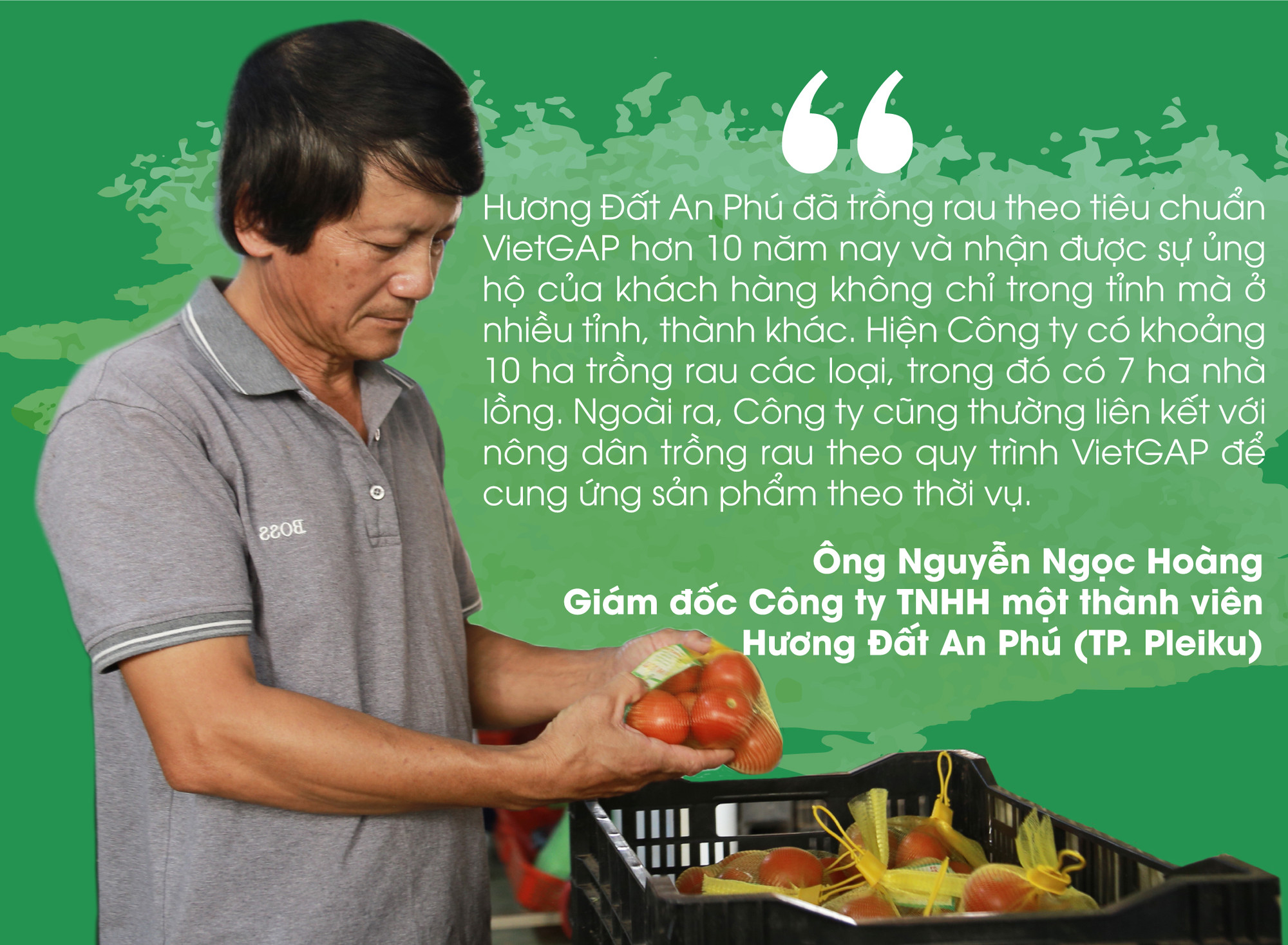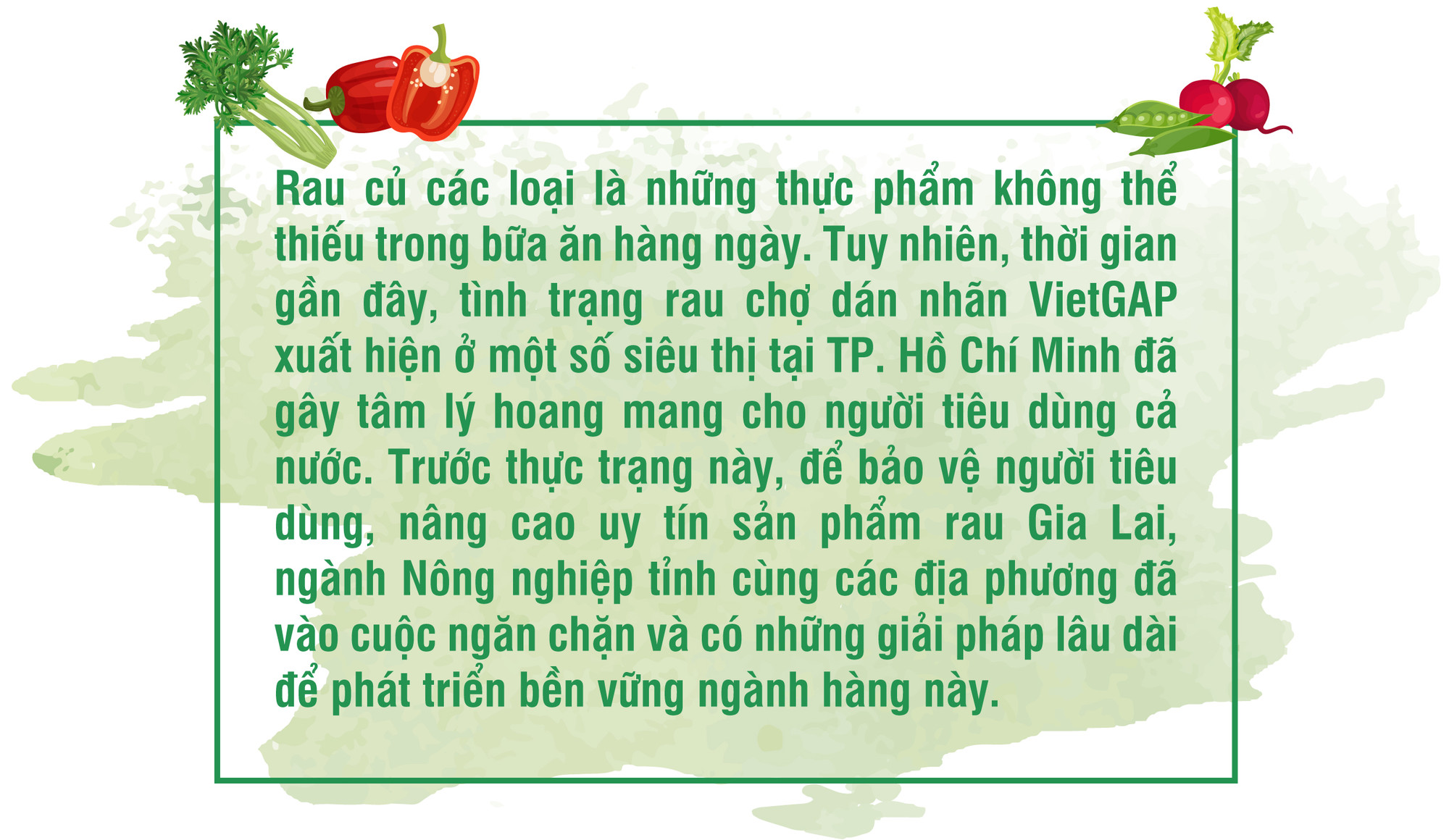 Do đó, không để “con sâu làm rầu nồi canh”, bên cạnh việc chúng tôi tự kiểm soát tốt chất lượng sản phẩm thì ngành chức năng cũng cần tăng cường kiểm tra, giám sát việc tuân thủ các quy chuẩn, tiêu chuẩn cũng như minh bạch hóa thông tin, tạo uy tín cho rau Gia Lai.