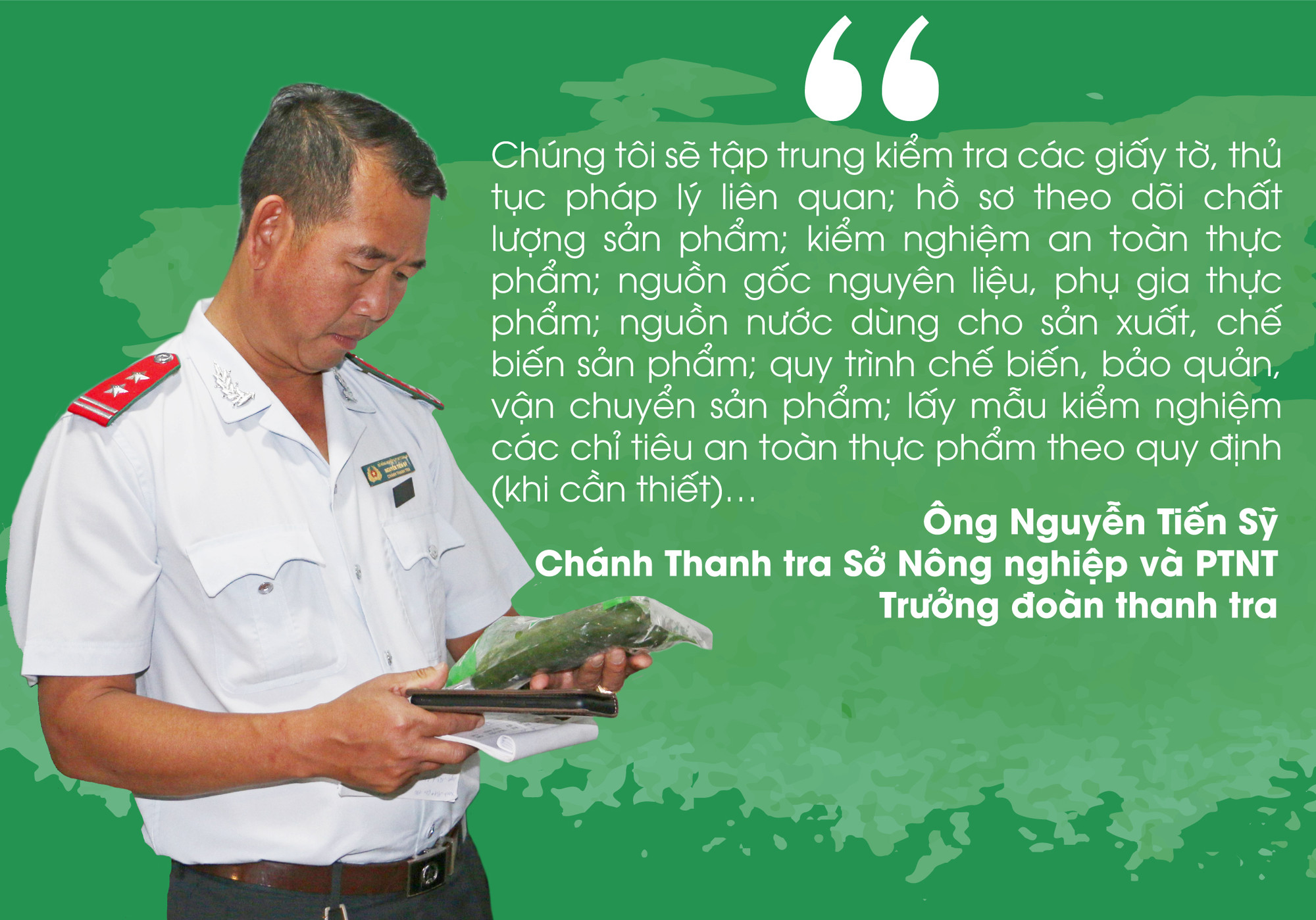 Theo ông Nguyễn Tiến Sỹ-Chánh Thanh tra Sở Nông nghiệp và PTNT, Trưởng đoàn thanh tra, mục đích thanh tra nhằm kịp thời phát hiện, ngăn chặn, xử lý các hành vi vi phạm quy định về an toàn thực phẩm, tuyệt đối không để ảnh hưởng đến sức khỏe và quyền lợi của người tiêu dùng. Đồng thời, qua thanh tra nhằm đẩy mạnh tuyên truyền, phổ biến kiến thức về an toàn thực phẩm, truy xuất nguồn gốc, ghi nhãn hiệu hàng hóa cũng như kịp thời thông báo các cơ sở vi phạm trên các phương tiện thông tin đại chúng để người tiêu dùng biết, lựa chọn sản phẩm an toàn.