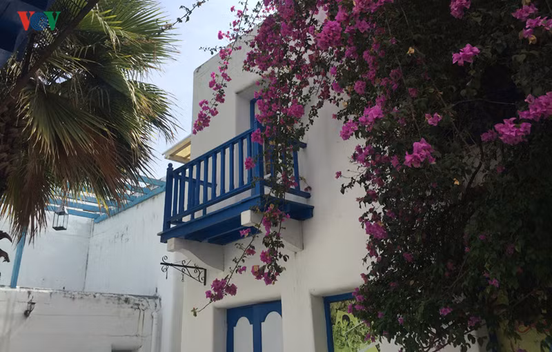 | ...nơi nổi tiếng với những những ngôi nhà nhỏ trắng muốt cùng những ô cửa màu xanh... |
