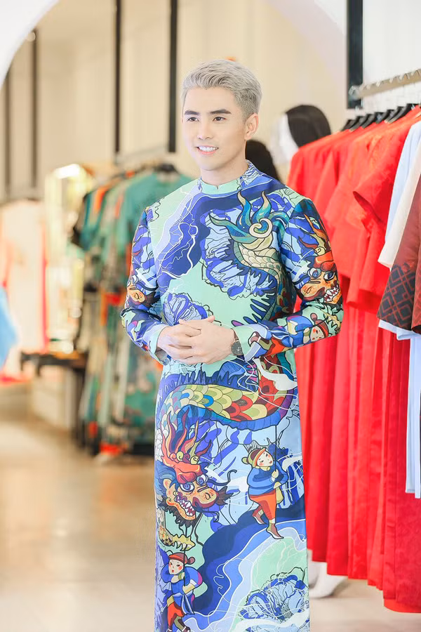 Khoác lên chiếc áo dài đầy cảm hứng hội họa đặc sắc của nhà thiết kế Thủy Nguyễn, ca sĩ - diễn viên Will (365) vẫn khẳng định sự tự tin và mạnh mẽ mà những chiếc áo dài mang lại cho phái mạnh.