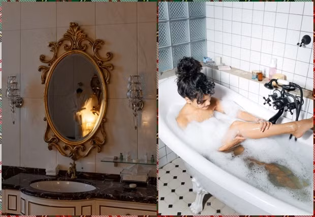 Tất nhiên, bạn không thể hóa phép cho phòng tắm trở thành spa đắt tiền. Nhưng những chi tiết bất ngờ như đèn chùm cổ điển, rèm nhung, tác phẩm nghệ thuật… đều có thể khiến phòng tắm trở nên hấp dẫn hơn.