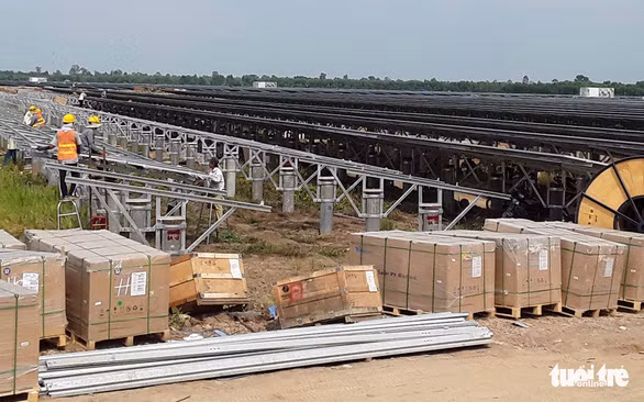 Một dự án điện mặt trời phía Nam đang gấp rút hoàn thành - Ảnh: N.AN