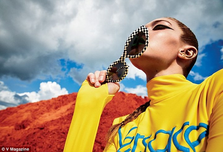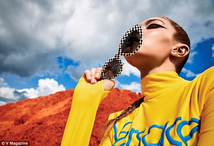 | Trong những bức hình khác, Gigi Hadid rũ bỏ vẻ đẹp mong manh để trở nên mạnh mẽ đầy cá tính. |