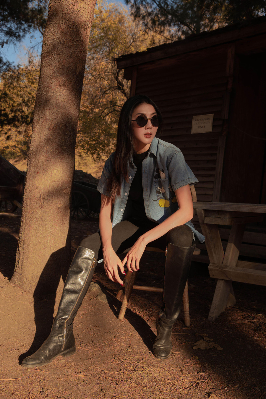 Người đẹp chia sẻ: “Đồ denim giúp bạn tiết kiệm thời gian khi mix & match. Một chiếc quần jeans hay yếm denim dễ dàng phối cùng nhiều kiểu áo thun, áo len, áo khoác và đủ loại giày, boots. Trong khi đó, áo khoác denim ăn rơ cùng nhiều kiểu váy từ họa tiết lẫn váy trơn một màu”.