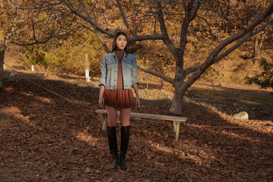 Chọn bối cảnh mùa thu vàng ở vườn táo Oak Glen thuộc vùng ngoại ô nước Mỹ để chụp lookbook, siêu mẫu Ngọc Quyên hóa nàng thơ trong những bộ trang phục phong cách street style vừa trẻ trung, duyên dáng vừa mạnh mẽ, cá tính.