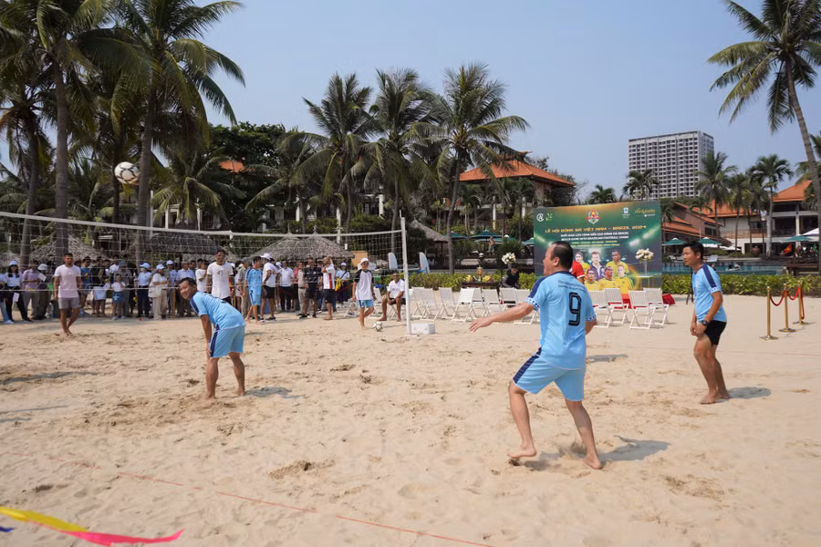 | Đây là môn thể thao gần giống bóng chuyền bãi biển, nhưng không dùng bàn tay và cánh tay. Trận đấu bóng trên biển thu hút đông đảo người dân và du khách. |