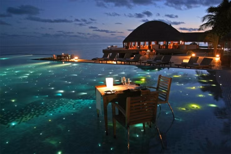 Một khu nghỉ dưỡng đảo tư nhân năm sao nổi tiếng với hồ bơi, lấp lánh vào ban đêm. 43 bungalow đảm bảo sự riêng tư của khách và dịch vụ chất lượng thế giới làm cho kỳ nghỉ của du khách trở thành một trải nghiệm khó quên. Khu nghỉ mát có các phòng spa dưới nước rất độc đáo, các phương pháp trị liệu thư giãn và trực quan hấp dẫn, đồng bộ với thế giới dưới nước.