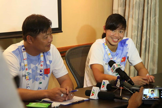 HLV Đặng Anh Tuấn (trái) gắn bó với Ánh Viên nhiều năm nay xin thôi huấn luyện học trò ruột. Ảnh: Độc Lập
