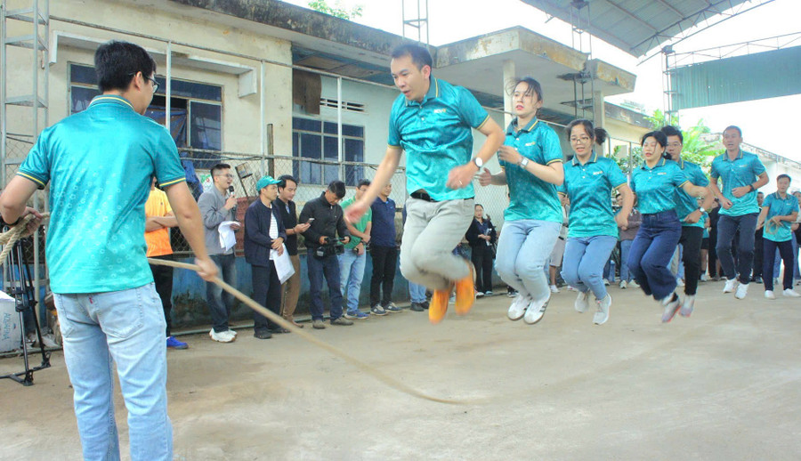 Ngay sau lễ khai mạc, không khí hội thi trở nên sôi nổi với các môn thể thao và trò chơi dân gian diễn ra hấp dẫn, kịch tính. Ở phần thi nhảy dây tập thể, trong tiếng reo hò cổ vũ nhiệt tình của khán giả, các đội tham gia thể hiện sự phối hợp ăn ý, nhịp nhàng. Từng vận động viên vừa khéo léo vượt qua sợi dây đang quay liên tục, vừa duy trì tốc độ nhanh trong suốt thời gian quy định. Với sự đồng lòng, quyết tâm của từng thành viên, đội BIDV Gia Lai đã giành chức vô địch.