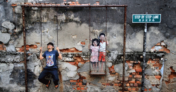 Những bức vẽ này ẩn chứa những thông điệp giản dị nhưng ý nghĩa, lấy cảm hứng từ chính những gì thân thuộc trong cuộc sống hằng ngày của người dân Penang. Chúng được kết hợp hài hòa với các tòa nhà di sản, bổ sung một màu sắc cho cảnh quan thành phố. Các họa sĩ còn tinh tế phối tranh vẽ với những “đạo cụ" thật, như xe máy, xe đạp, xích đu, bàn ghế, cửa sổ... tạo nên những không gian 3D vừa thực vừa ảo rất sống động. Không chỉ du khách mê mệt chụp ảnh mà người dân Penang cho biết, họ cũng rất yêu thích những hình vẽ ngộ nghĩnh này, bởi chúng mang đến cho Penang một sức sống trẻ trung và tươi mới.