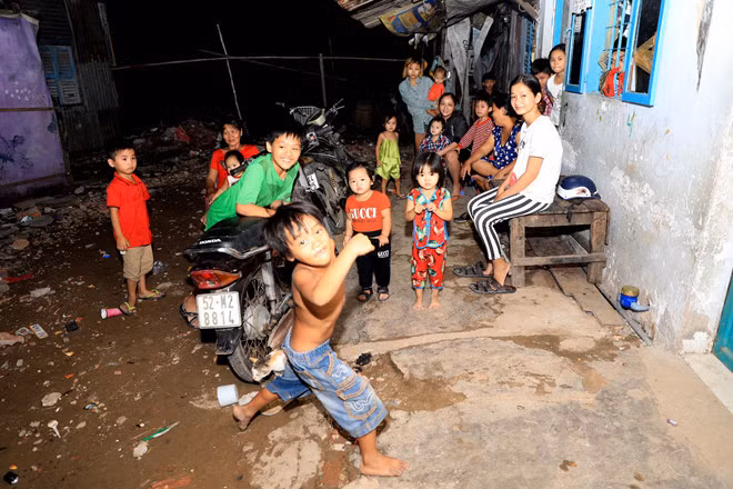 Nhà bà N. lúc nào cũng đông đúc vì là chỗ ở của 16 đứa nhỏ. ẢNH: LAM NGỌC