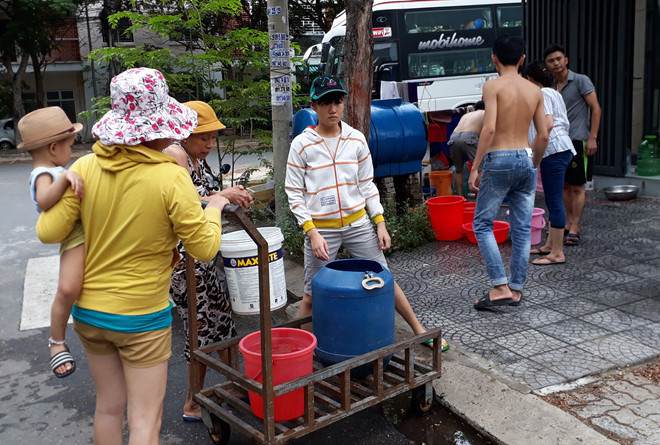 Khổ sở nhất là các chung cư, nhất là các hộ ở tầng trên cùng bởi vừa xa chỗ cấp nước “dã chiến”, lại ở tầng cao, nước gom góp được chút ít thì cư dân tầng dưới “hút” sạch. Nhiều gia đình có trẻ sơ sinh ứa nước mắt vì đồ thay ra không có nước để giặt nên hôi thối. Trẻ em không có nước tắm sinh ra rôm sảy... “Chưa khi nào chứng kiến cảnh thiếu nước nghiêm trọng như vậy. Tôi canh me cả đêm. Sáng dậy thấy xô nước được vài lít mà ngao ngán”, ông Trần Văn Hải, ngụ chung cư Blue House (P.Nại Hiên Đông) kể.