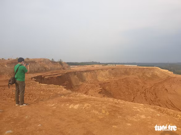 Hàng ngàn khối đất đá sụt lún xuống khu công nghiệp Nhân Cơ - Ảnh: L.ĐAN