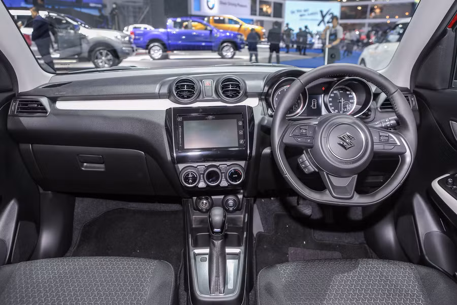 Nội thất của Swift 2018 nâng cấp khá nhiều so với phiên bản trước và thay đổi thiết kế. Phiên bản cao cấp nhất trang bị màn hình cảm ứng kích thước 7 inch. Đồng hồ hiển thị điện tử sau vô-lăng chỉ xuất hiện ở bản cao cấp. Vô-lăng bọc da, tích hợp nhiều nút bấm chức năng và trợ lực điện tử.