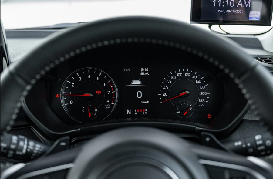 Trang bị của Suzuki Swift 2025 tại Việt Nam vẫn còn là bí ẩn. Trong khi đó, ở thị trường nước ngoài, xe sở hữu ghế bọc nỉ, vô lăng 3 chấu tích hợp phím chức năng, bảng đồng hồ analog với màn hình đa thông tin 4,2 inch, màn hình cảm ứng trung tâm 9 inch, điều hòa tự động 1 vùng, màn hình hiển thị thông tin kính lái HUD, phanh tay điện tử, tự động giữ phanh tạm thời và cổng USB.