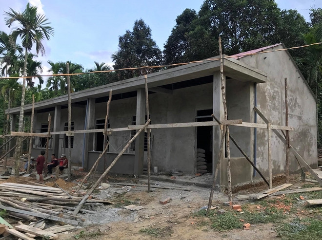 Tuy nhiên, để xây được là cả một quá trình không hề đơn giản. Những người tham gia vận chuyển vật liệu phải lội nước rồi dùng bè kéo nhiều ngày mới đưa vật liệu đến nơi xây dựng, nhờ vậy điểm trường mới dần hình thành như bây giờ.