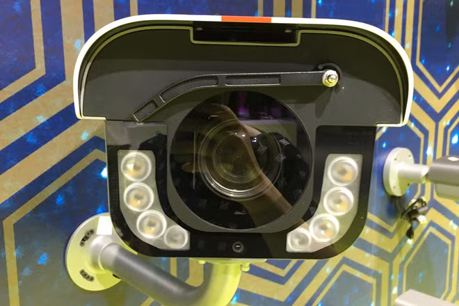 Camera giam sát của Huawei được trưng bày tại một triển lãm ở Trung Quốc. Ảnh: REUTERS