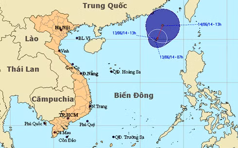 Đến 13 giờ ngày 14-6, vị trí tâm áp thấp nhiệt đới ở vào khoảng 21,6 độ Vĩ Bắc; 117,6 Kinh Đông, cách quần đảo Hoàng Sa khoảng 810 km về phía Đông Bắc.