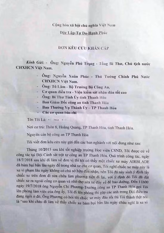 Đơn kêu cứu của anh H. gửi các cơ quan chức năng