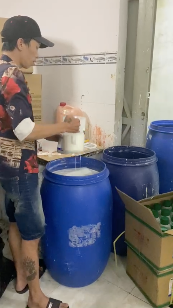 Đối với thuốc bảo vệ thực vật dạng lỏng, Giác sẽ dán tem, nhãn giả lên vỏ chai nhựa và đưa dung dịch lỏng giả thuốc bảo vệ thực vật vào vỏ chai nhựa trên. Sau đó, niêm phong seal giả lên miệng nắp chai, đóng nắp và xếp vào thùng carton. Nhóm đối tượng hoàn tất sản phẩm giả thành phẩm để tiêu thụ.