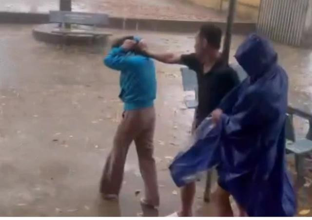 Sau đó, ông Thúy tiếp tục khống chế cô N. rồi đẩy ra sân trường, bắt đứng dưới mưa bất chấp sự can ngăn của một phụ huynh khác. Ông Thúy lớn tiếng lăng mạ cô N. và cho rằng trời mưa, con ông Thúy ướt là lỗi của cô giáo.