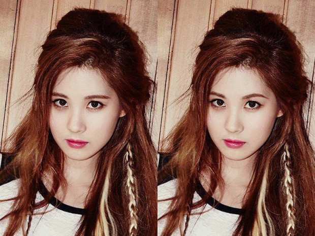Với người chị em cùng nhóm Seohyun thì kiểu chân mày nào cũng hợp, cả ngang và cả cong. Chân mày cong từng kiểu giúp Seohyun trông xinh đẹp và sắc sảo hơn.