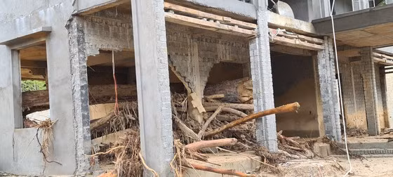 | Trường học sắp khánh thành bị lũ đánh sập. Ảnh: NGỌC PHÚC |