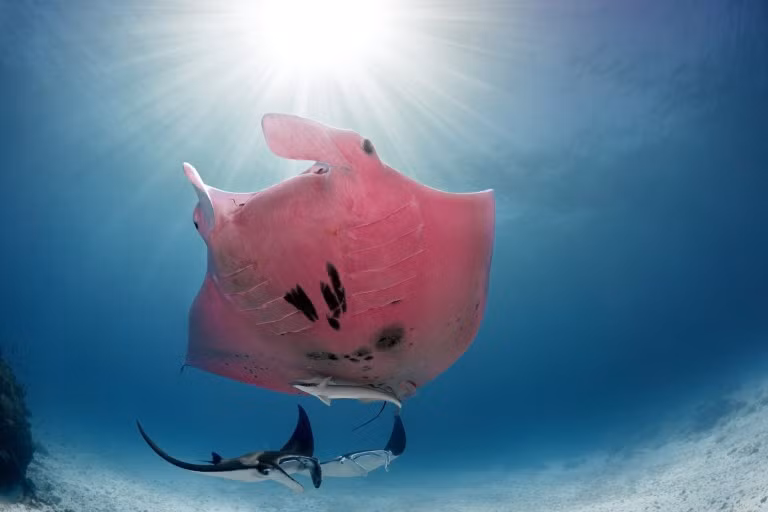 Con cá đuối hồng duy nhất trên thế giới này được chụp ảnh bởi nhiếp ảnh gia Kristian Laine tại rạn san hô Great Barrier nước Úc.