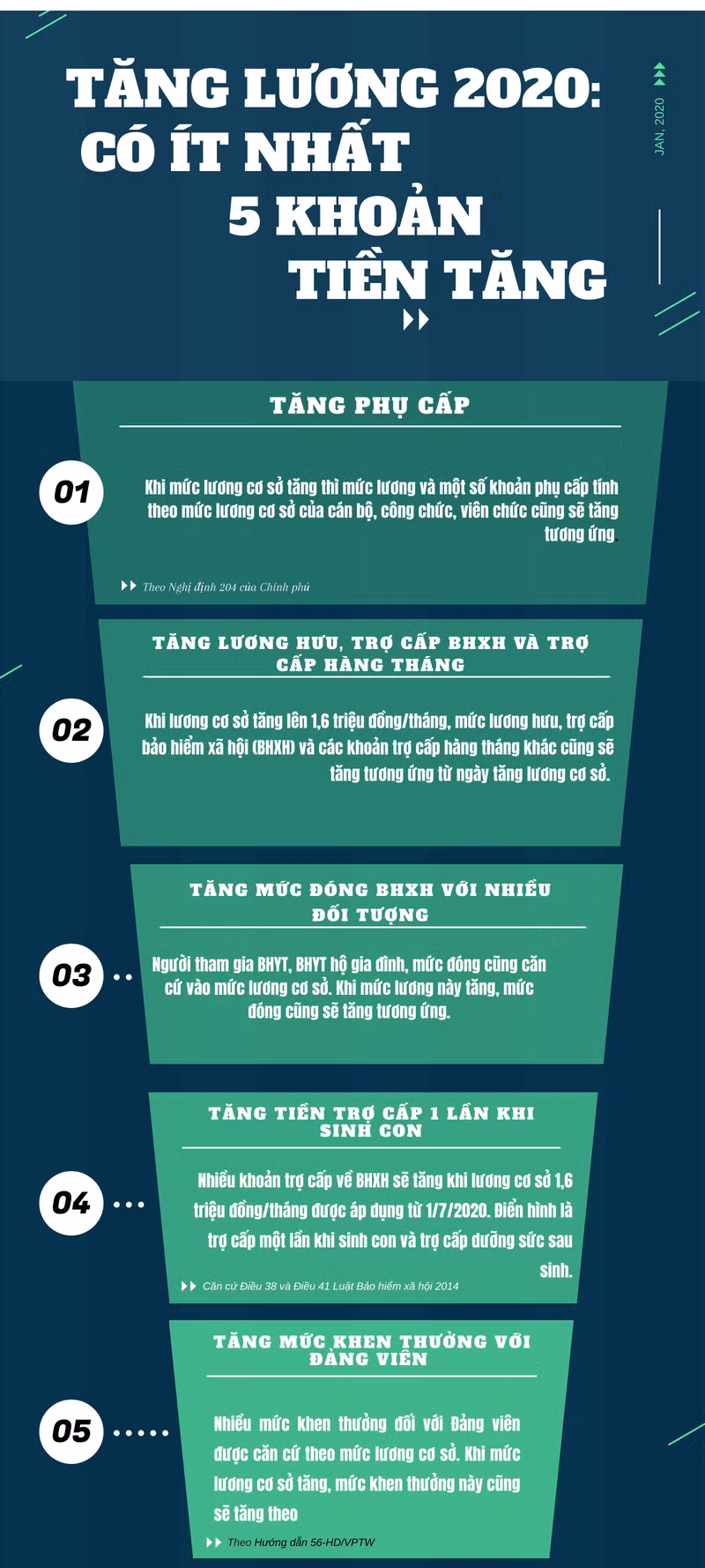 Lương cơ sở năm 2020 sẽ tăng lên 1,6 triệu đồng/tháng sẽ kéo theo rất nhiều thay đổi liên quan đến tiền lương, phụ cấp, trợ cấp bảo hiểm xã hội…