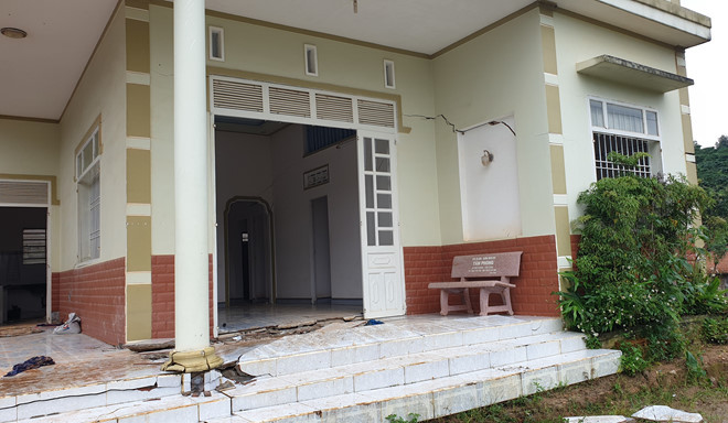Căn nhà mới vừa xây của ông Cao Bá Tám, xã Đại Lào bị sạt lở đất làm nứt nẻ hư hỏng hoàn toàn. Ảnh: TRÙNG DƯƠNG