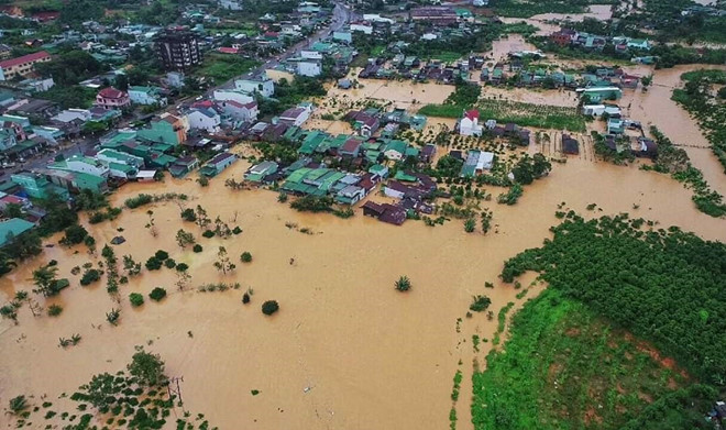 Nhiều xã, phường TP.Bảo Lộc chìm trong nước lũ. Ảnh: TRÙNG DƯƠNG