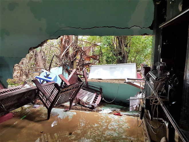 Bi đát hơn là hoàn cảnh của gia đình ông Phạm Ngọc Thanh (trưởng thôn 2, xã Lộc Châu). Không chỉ cuốn trôi toàn bộ tài sản, mà lũ dữ còn tống sập cả căn nhà xây của gia đình ông.