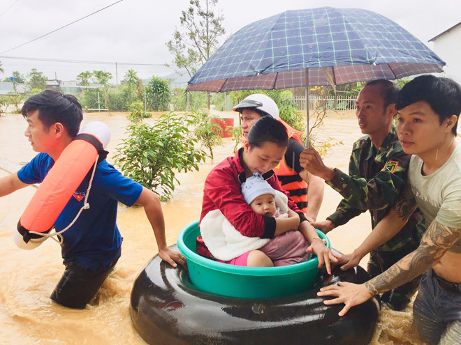 “Lũ đã nhấn chìm nhà tôi dần tới nóc. Khi lũ đổ về, vợ chồng tôi chỉ kịp ôm con chạy lũ thoát thân. Suốt 2 ngày qua, toàn bộ tài sản của gia đình chìm trong nước hơn 2 m. Chiều hôm qua, nước lũ rút bớt, tôi quay trở lại, thì tất cả trôi sạch không còn thứ gì. Hai con bò cũng trôi luôn theo nước lũ. Khổ quá, không biết gia đình tôi lấy gì để sống đây. Mong sao vợ chồng khỏe mạnh, để làm lại mà lo cho các con”, ông Quang nghẹn lời.
