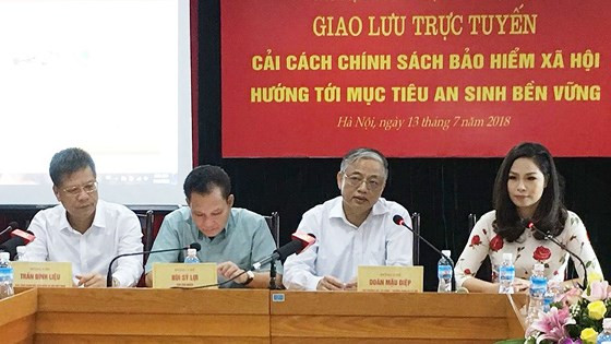 Sáng nay 13-7 tại Hà Nội, Báo Điện tử Đảng Cộng sản Việt Nam đã tổ giao lưu trực tuyến về cải cách chính sách BHXH hướng tới mục tiêu an sinh bền vững với sự tham gia của Thứ trưởng Bộ LĐTB-XH Doãn Mậu Diệp, ông Bùi Sỹ Lợi, Phó chủ nhiệm Ủy ban về các vấn đề xã hội của Quốc hội và ông Trần Đình Liệu, Phó Tổng giám đốc BHXH Việt Nam.