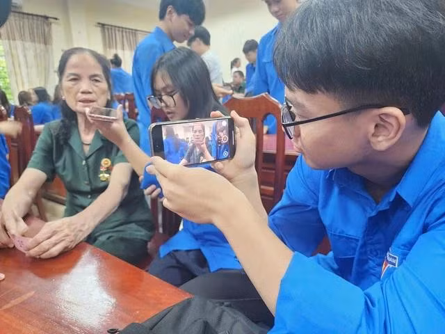 Và chỉ với hơn 30 phút tập huấn thực hành, các học sinh đã biết làm chủ các tác vụ quay phim, dựng phim cơ bản trên chiếc điện thoại di động đồng thời thực hành phòng vấn các cựu chiến binh là khách mời đặc biệt trong chương trình.