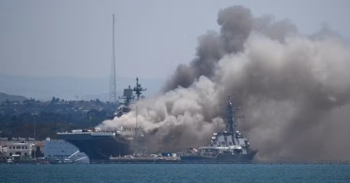 Hạm đội Thái Bình Dương của Mỹ cho biết tất cả thủy thủ đoàn đã ra khỏi tàu và đang được thẩm vấn. Lực lượng cứu hỏa chiến đấu với ngọn lửa bùng lên trên tàu USS Bonhomme Richard vào sáng 12-7.