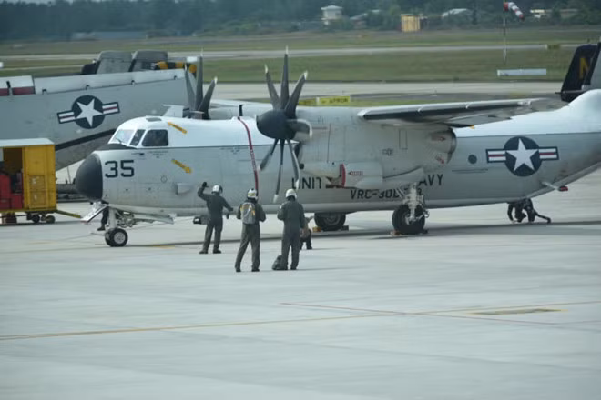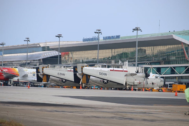 Hai chiếc C2A của hải quân Mỹ tại sân bay Đà Nẵng. Ảnh: Đậu Tiến Đạt