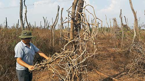 3.000 trụ tiêu đều chết sạch khiến gia đình ông Hồ Hồng Lam mất hàng tỷ đồng và lâm cảnh nợ nần. Ảnh: T.H