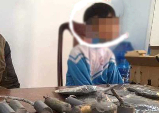 Cháu P. cùng nhiều quả pháo tại cơ quan công an
