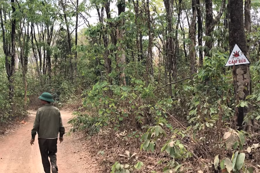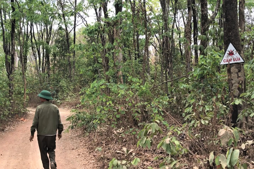 Một cán bộ kiểm lâm ở xã xã Ia Kiêng, huyện Đức Cơ, tỉnh Gia Lai tuần tra một cánh rừng có nguy cơ cháy cao. Ảnh: Bảo Trung
