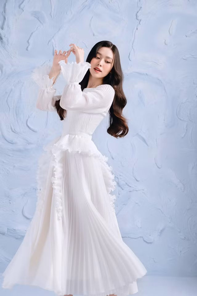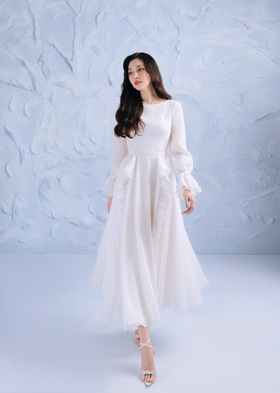 Vẫn giữ signature của thương hiệu với gam màu trắng chủ đạo, các thiết kế tone trắng ở BST Resort 2023 được chăm chút làm mới bề mặt chất liệu. Những đường dập ly hay xếp nếp tỉ mỉ tạo ra vẻ duyên dáng và dịu dàng khó lẫn, trong khi đường viền và bèo nhún vừa yêu chiều cá tính "bánh bèo", vừa đủ mềm mại để các cô nàng công sở làm duyên. Nhiều item được khéo léo xếp lớp layer tạo ra những khoảng hở xuyên thấu đầy ý tứ - qua đó vừa phù hợp với tiết trời mùa hè, vừa đủ thanh lịch, chỉn chu để xuất hiện trong nhiều không gian.