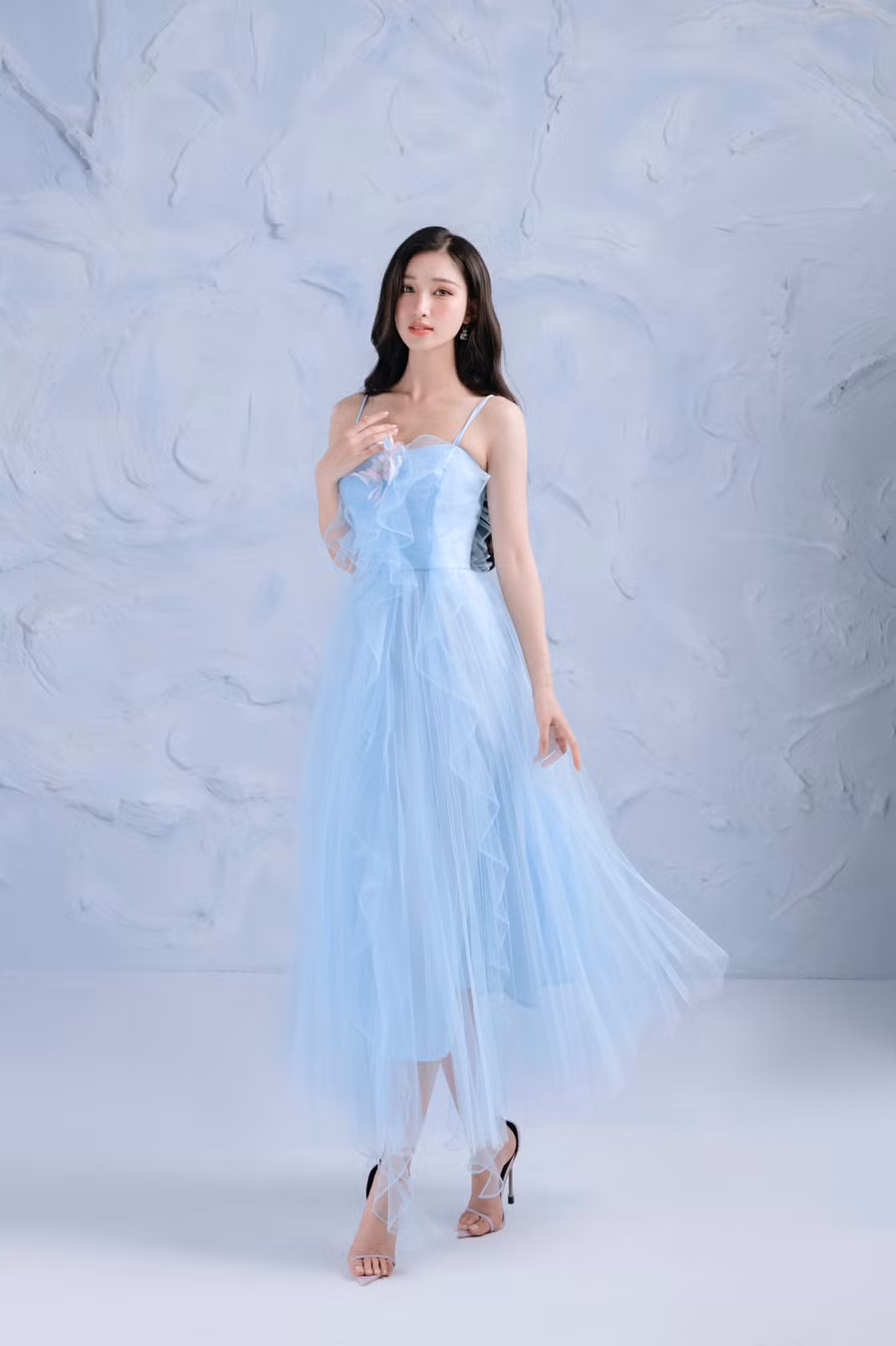 Gam màu xanh pastel với hai sắc độ riêng biệt chiều chuộng những quý cô khó tính nhất. Trên các chất liệu bóng và đứng phom, nhà mốt đưa ra những mẫu đầm tiệc nhẹ mang đến vẻ ngoài trong trẻo pha chút quyến rũ. Các chất vải mềm rũ và mỏng manh được đưa vào dáng váy xòe, đầm hai dây... sẵn sàng đồng hành cùng nàng qua những chuyến đi biển, dạo phố hay gặp mặt bạn bè.