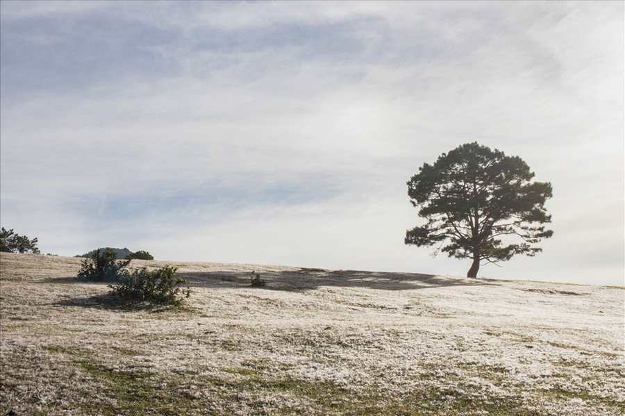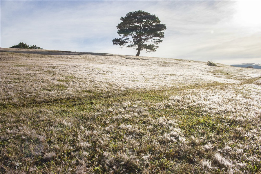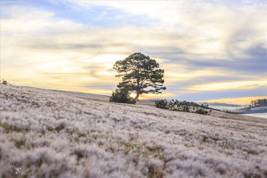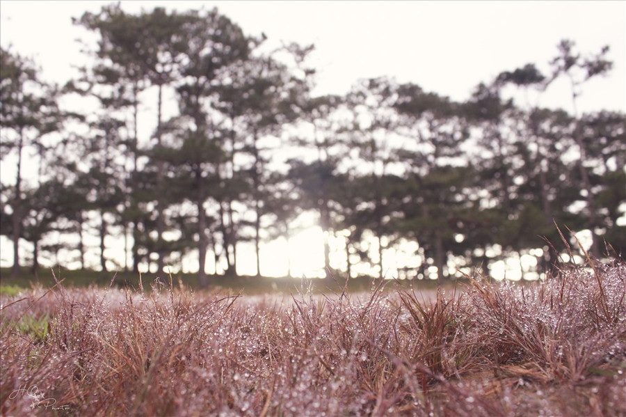 Và khi mặt trời chiếu những tia nắng đầu tiên, đồi cỏ bững lên một màu hồng nhẹ, rồi hồng đậm.